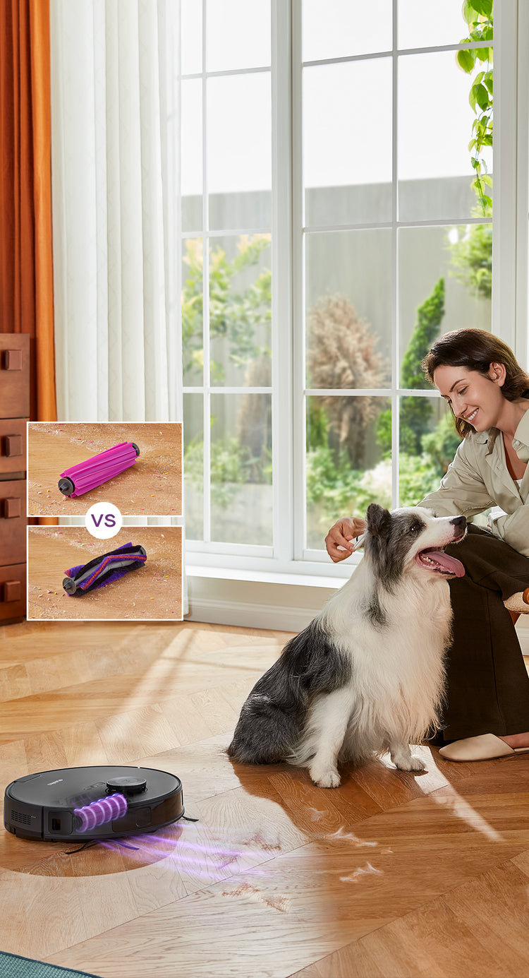 Den nydesignede gummirulle reducerer hårfiltre betydeligt og forbedrer anti-filtringseffektiviteten med 14 %*, hvilket gør den fantastisk til kæledyrsejere og husholdninger, hvor hår ofte efterlades på gulvet.