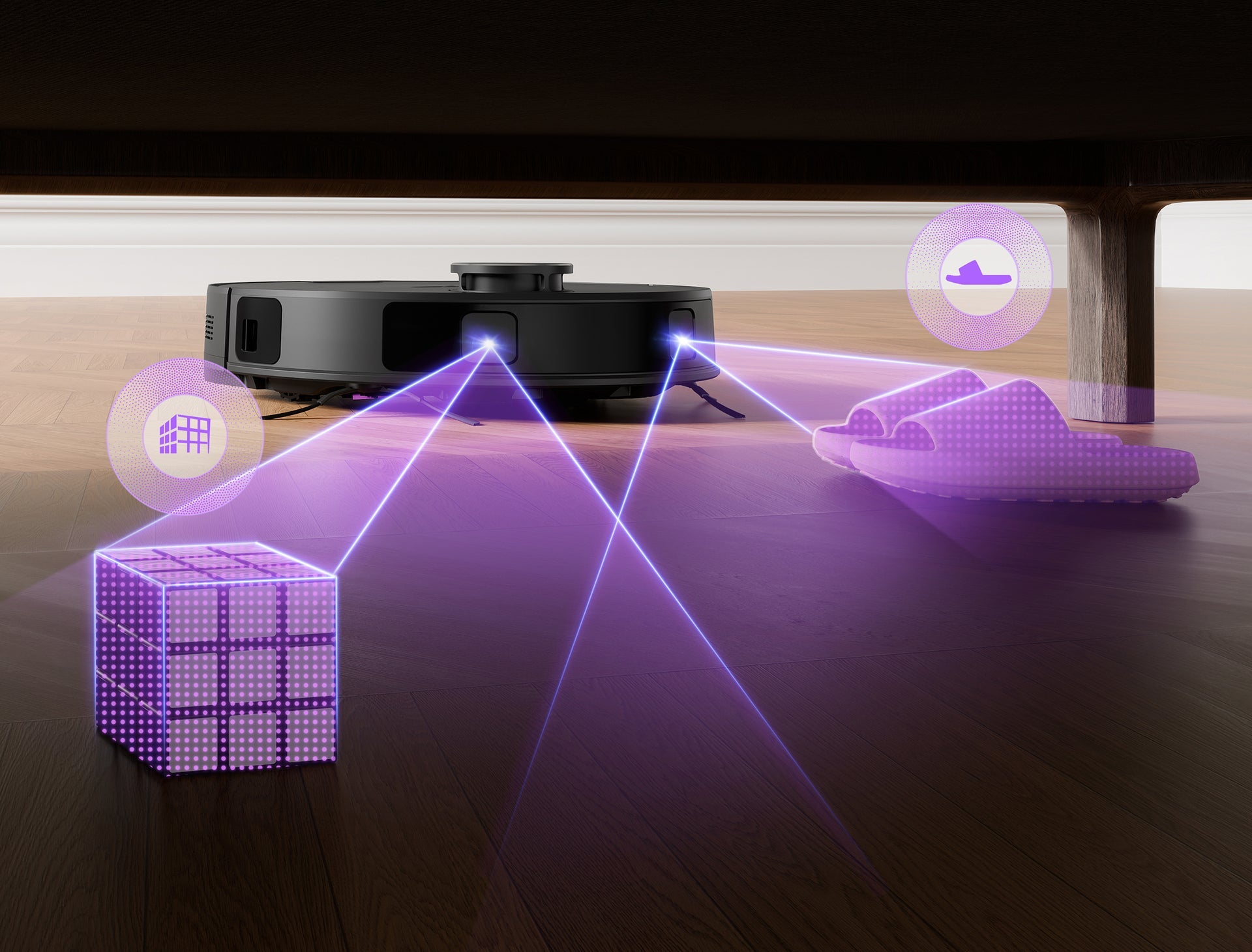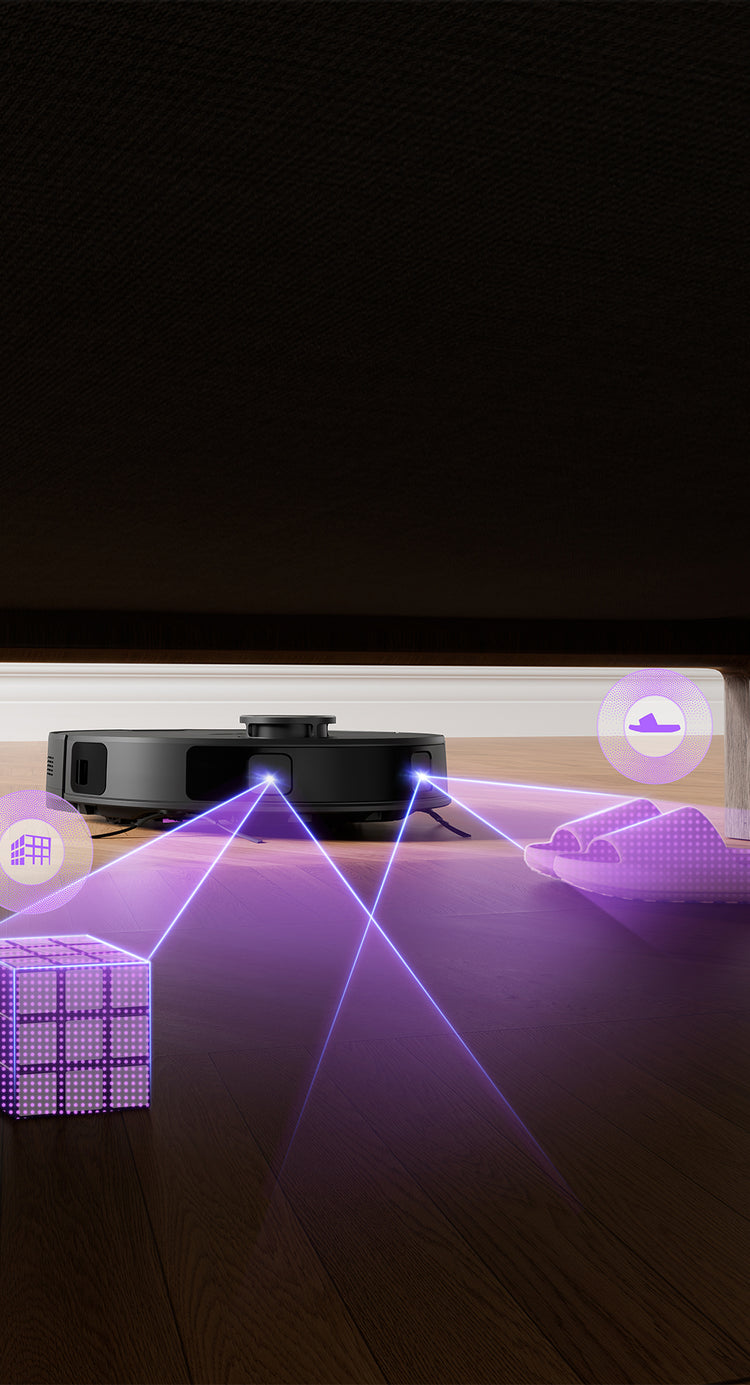 Avanceret DuoDetect AI™ 3D-teknologi til at undgå forhindringer giver dig mulighed for at overlade dine rengøringsopgaver til robotten uden at skulle gribe ind manuelt for at frigøre den.