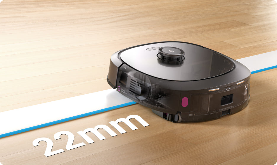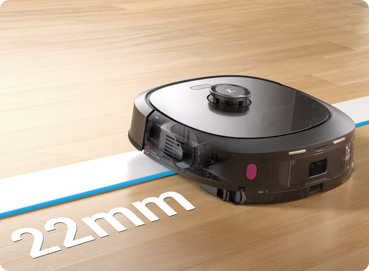 Den 22 mm forhindringsafstand sikrer, at J20 pålideligt kan klatre over forhindringer for at komme ind og ud af rum og automatisk rense hele dit hjem.