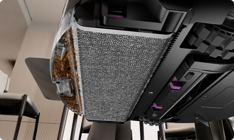 Det helt nye design af den cykliske bæltemoppe er koordineret med et robot-integreret dobbelt vandtanksystem til kontinuerligt at skylle moppen, fjerne snavset vand og grundigt skrubbe gulve for at give dig en fejlfri rengøring.