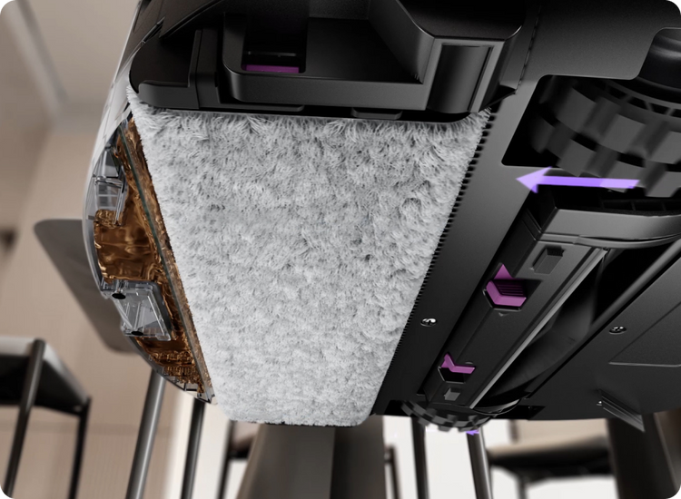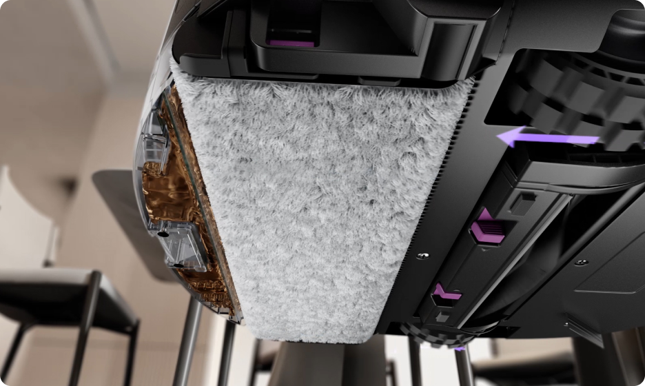 Nyd tørre tæpper takket være ultralyds tæppedetektion og intelligent moppejustering. Når J20 rammer tæppebelagte gulve, skifter den moppen til den ikke-absorberende side for at holde dem tørre.