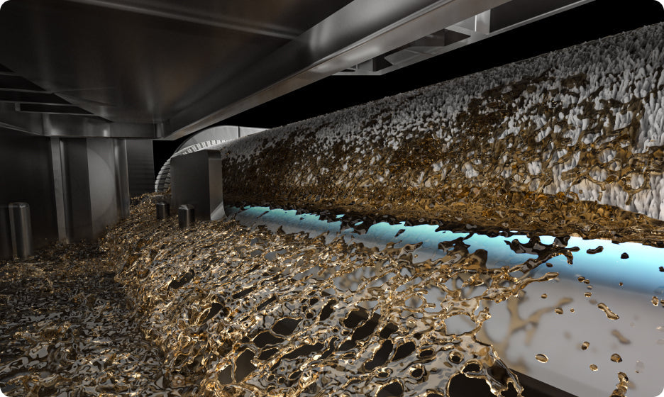Fem vanddyser, der er strategisk placeret ved siden af moppen, skyller den løbende med rent vand, hvilket sikrer optimal gulvrengøring.