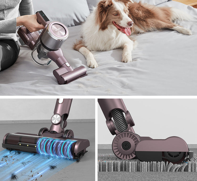 Med det 45° flydende sæde kan du perfekt duppe din madras eller sofa. Børstehovedet fjerner effektivt skæl og mider, fjerner støv og fjerner genstridige dyrehår direkte fra din seng.