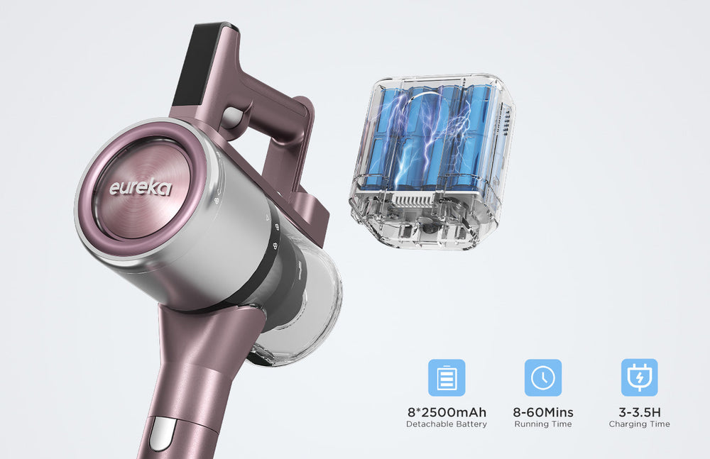 Batterilevetid på op til 60 minutter for den håndholdte støvsuger i lav tilstand, 8*2500mAh batteri med stor kapacitet, lang rengøringstid, dybderens nemt hele dit hus.