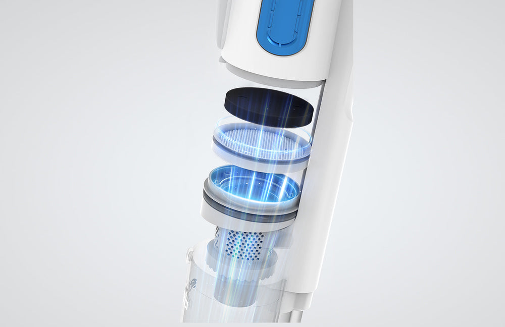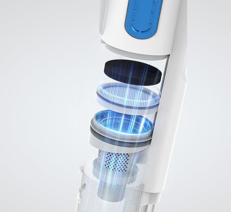 4-trins cyklonfiltrering fanger partikler og forhindrer dem i at flyde op i luften i dit hjem.