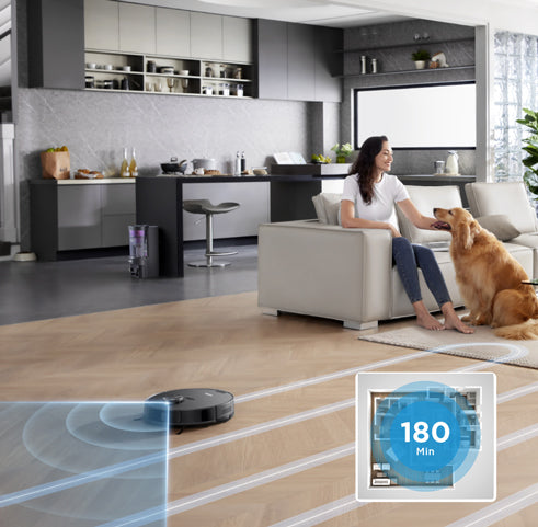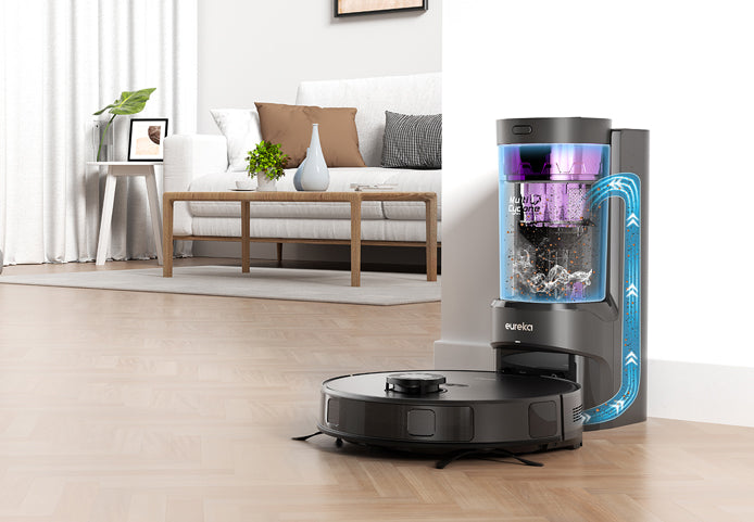Takket være LiDAR-navigation kortlægger Eureka E10s hurtigt dit hjem og identificerer de områder, der skal rengøres for en mere effektiv rengøringsoplevelse.