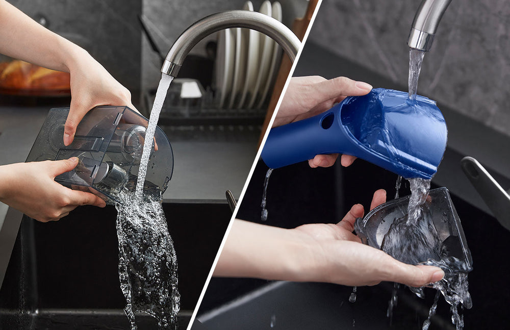 Den store, gennemsigtige dobbelttank har en kapacitet på 50,7 oz til rent vand og 27 oz til snavset vand, hvilket giver dig mulighed for at fortsætte rengøringen, mens du holder rent vand og snavset vand adskilt.